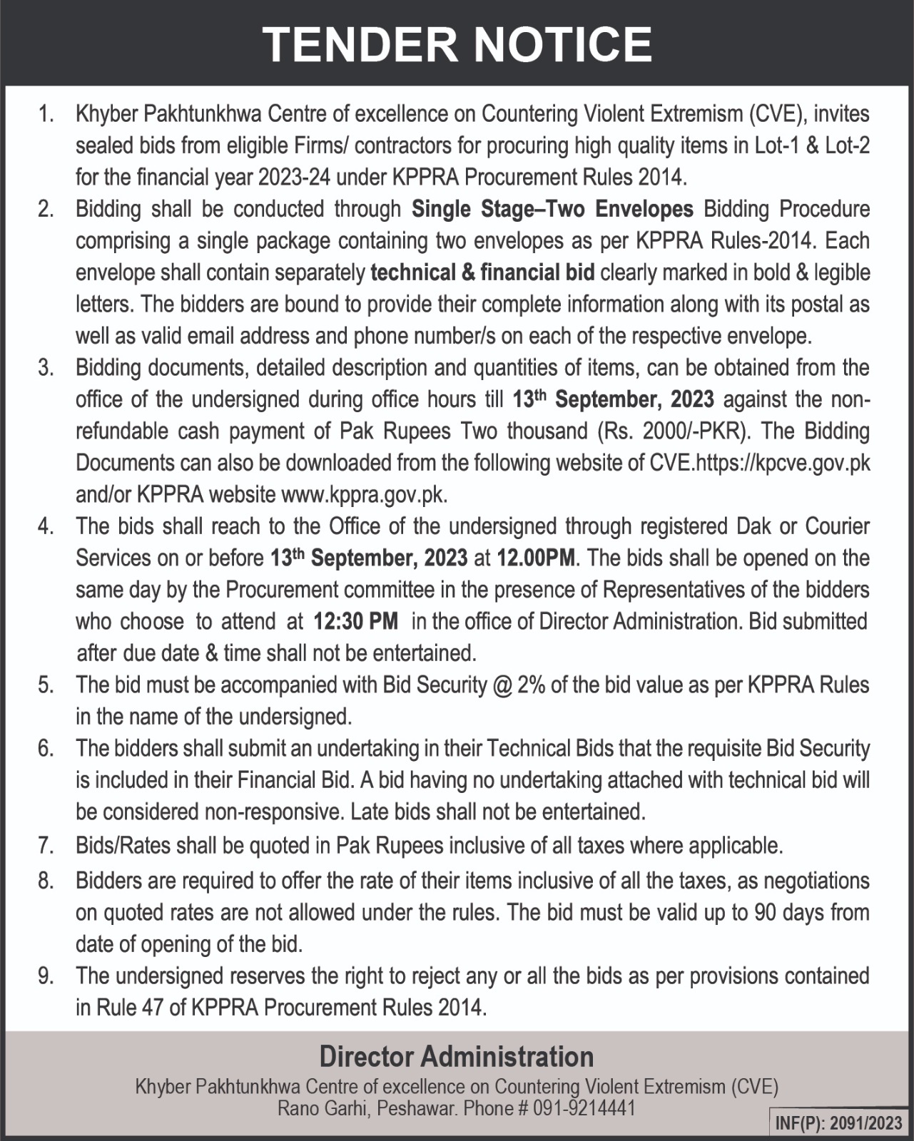 Tender Notice - IT Equipment & Generator